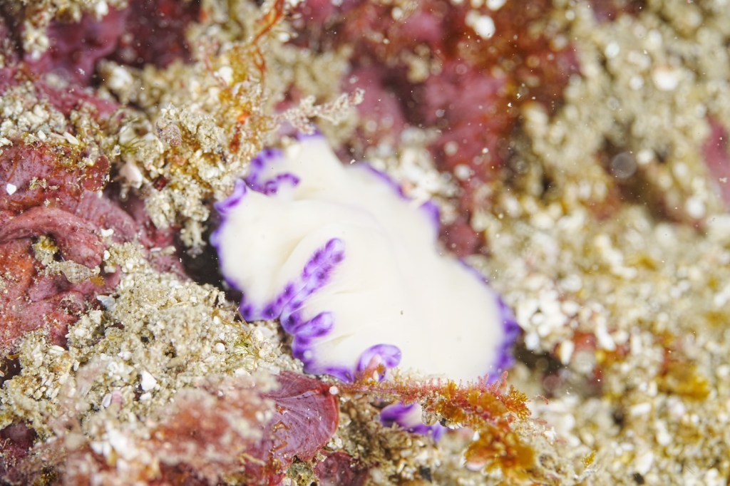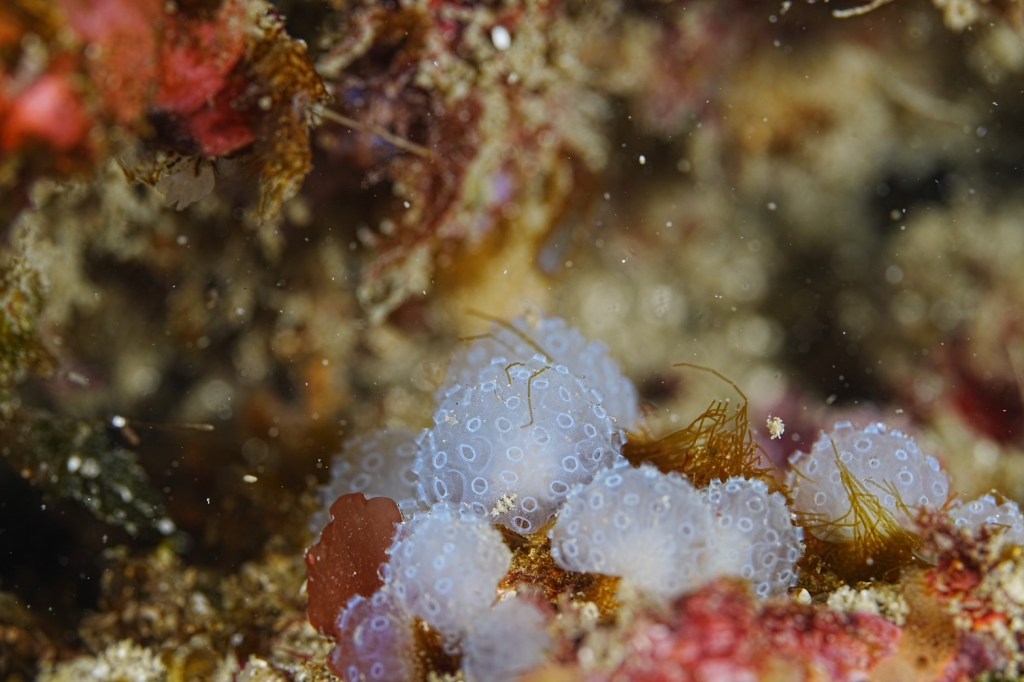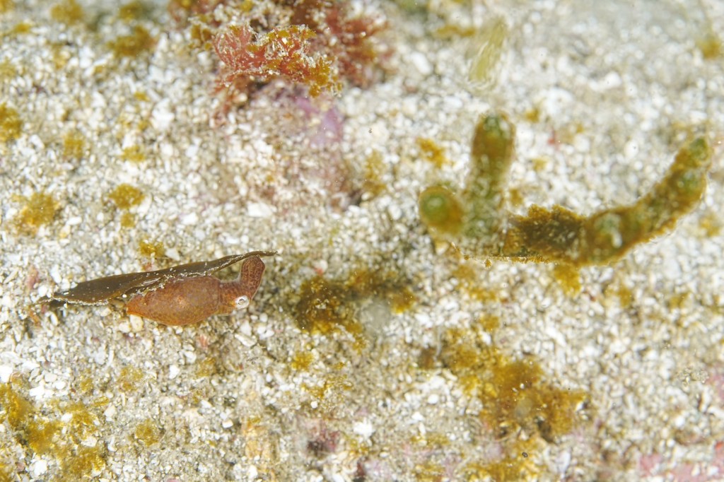 カツウラニセツノヒラムシ。その横は、キノコボヤ。これを捕食するのでみれるときは捕食シーンも見れちゃいます。