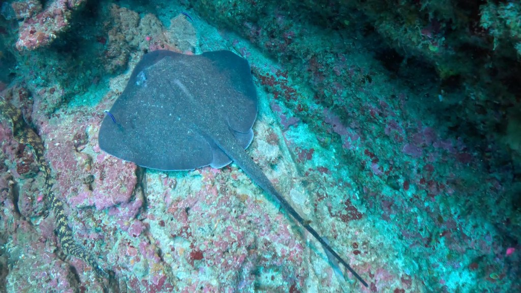 それよりも倍以上大きなエイがビーチで観察です。砂地で甲殻類を捕食していたのか砂を巻き上げてました。