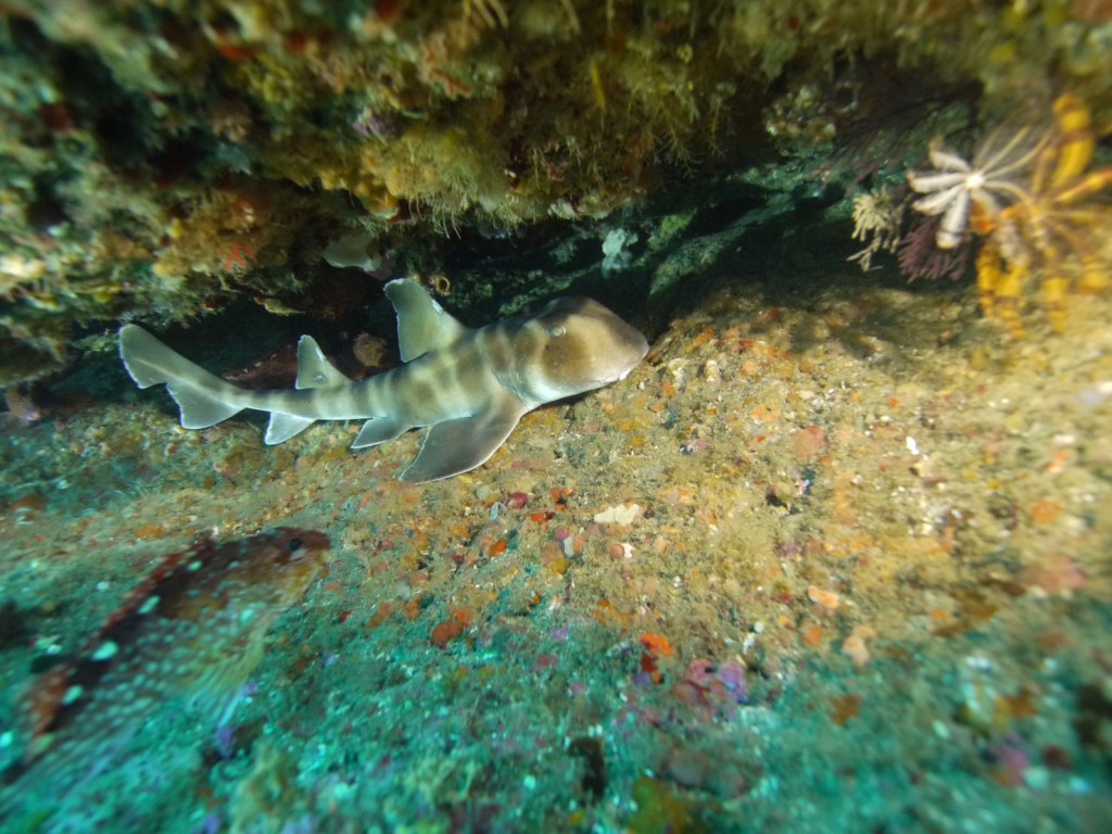 いつも見るよりもややちっちゃめのネコザメを観察。