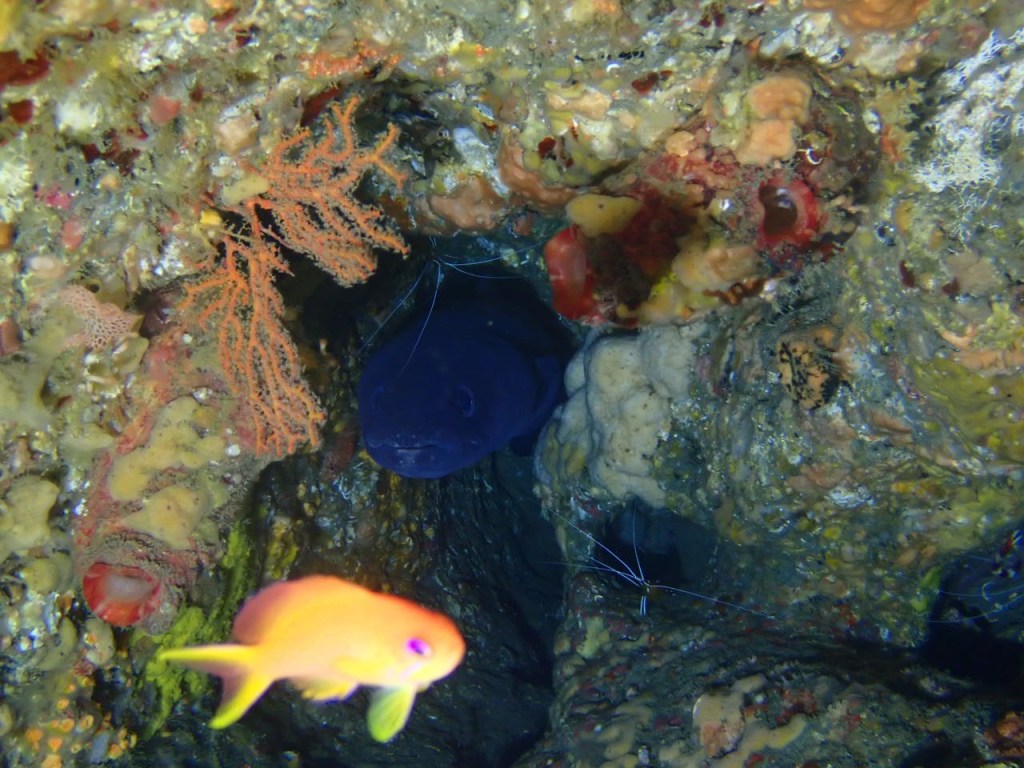 クロアナゴがアカシマシラヒゲエビにクリーニングされてるのを観察したり。