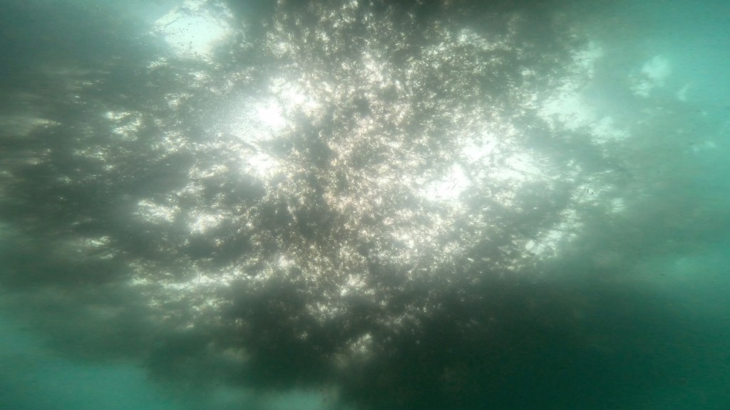 水底から見上げてみると曇り空でこんだけ照らしてくれます。