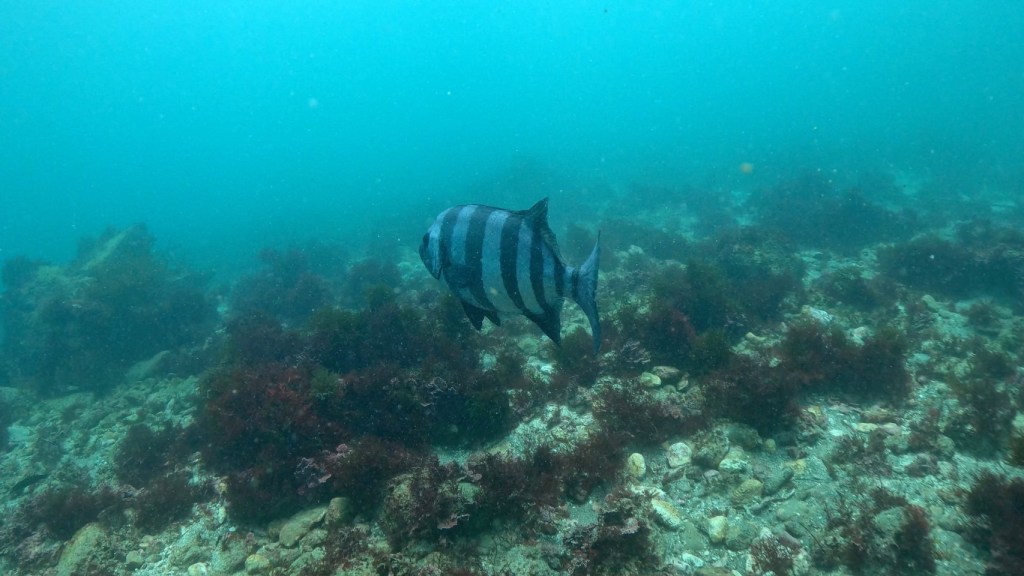 大きなイシダイが近くまで来てくれて。