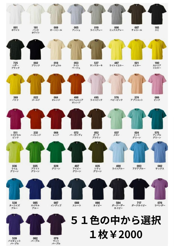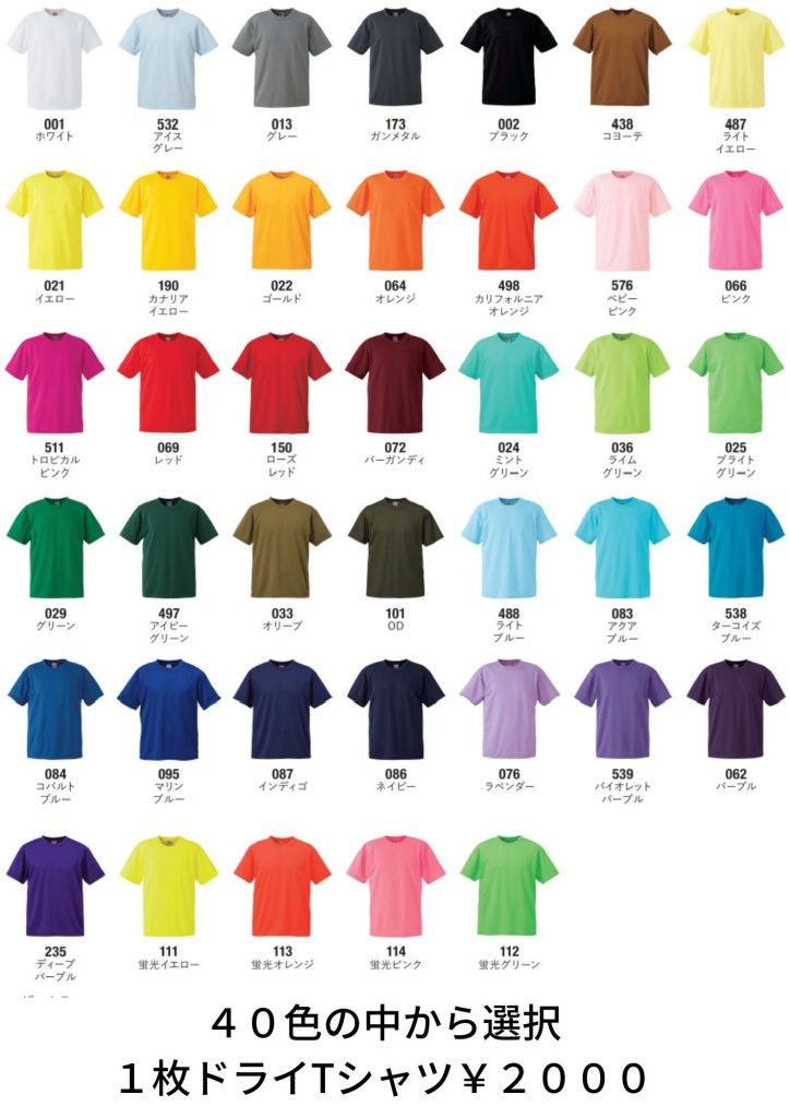 左画像がドライTシャツカラー40色・右画像がTシャツカラー51色。