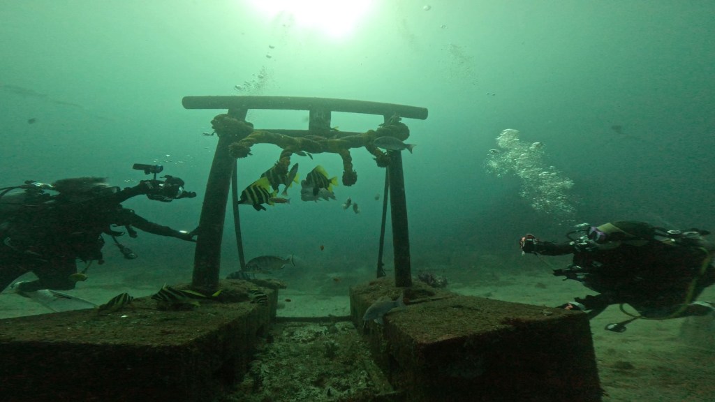 水中神社を泳いでいると。