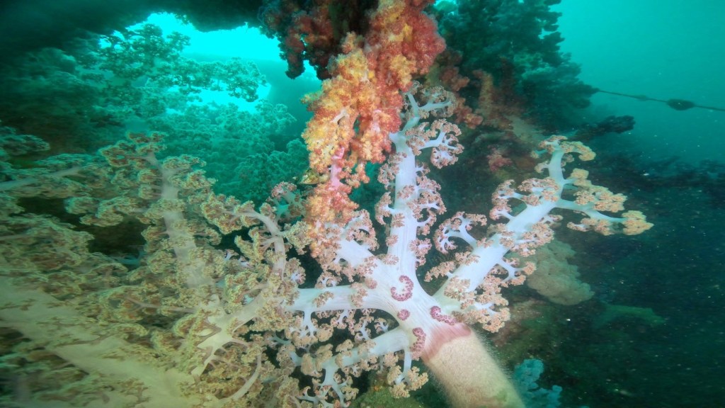 ソフトコーラルが満載。そんな中を良いサイズのホシエイが泳いでいる姿も見れたり。