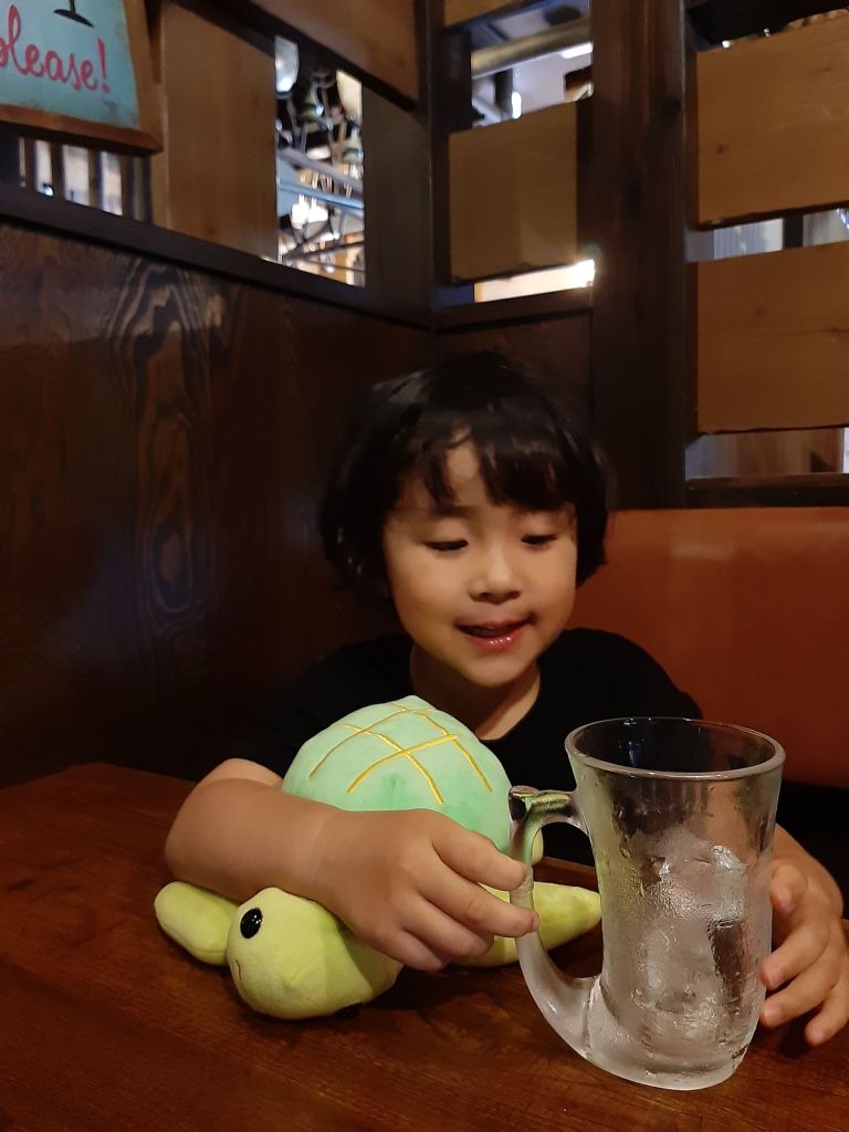 コーラをジョッキで飲みほして。