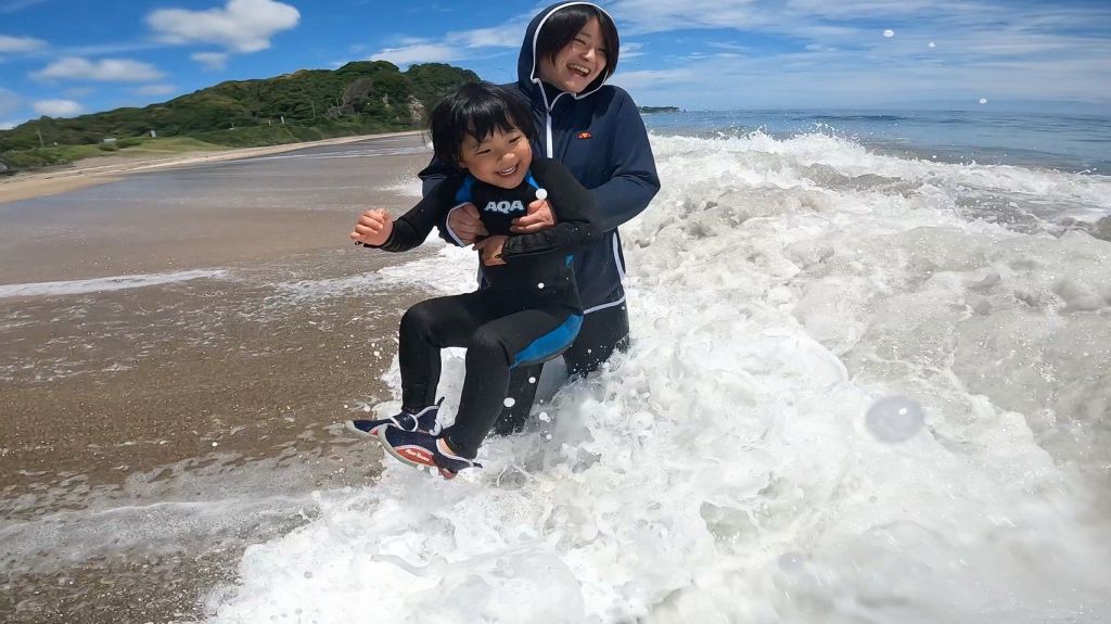 みつきも着たい!となったのでレンタルの子供用のウェットスーツを着せてみました。