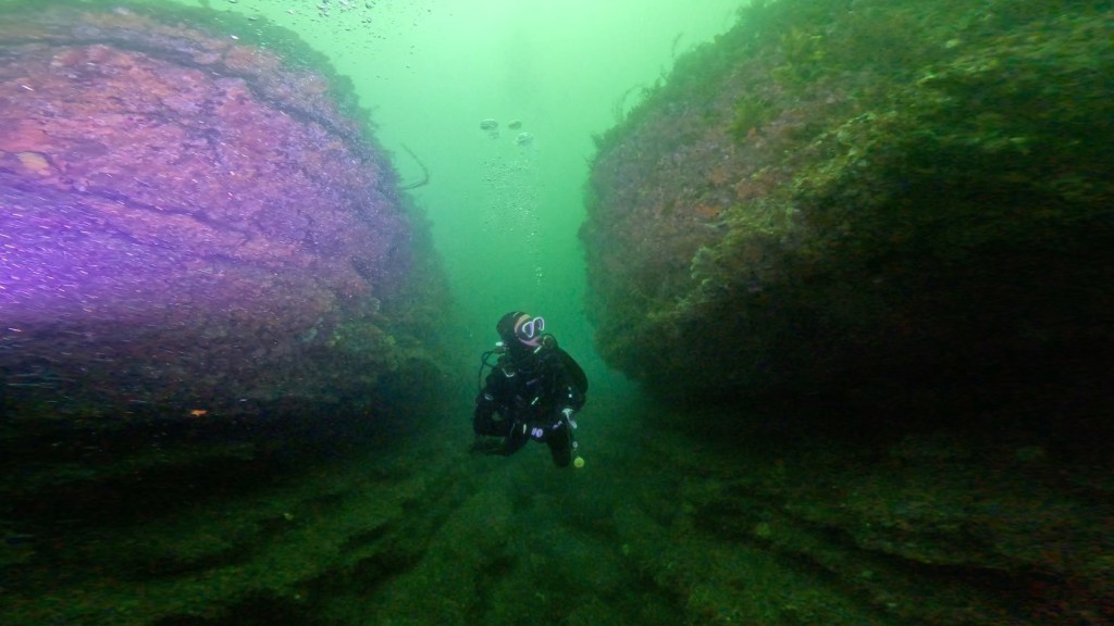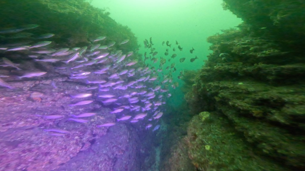 中央クレパスくぐると。イサキの群れも沢山たまっている箇所も。