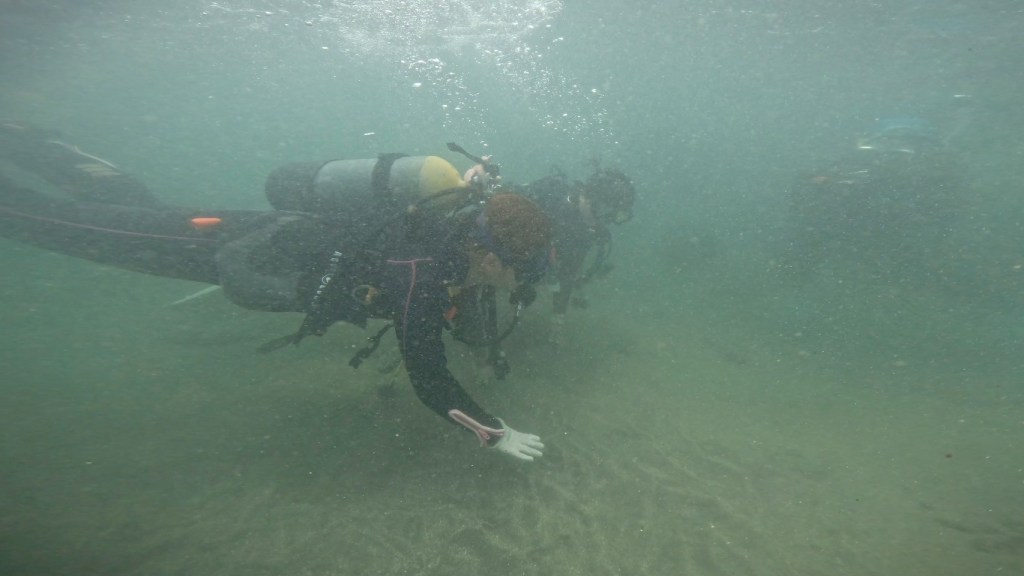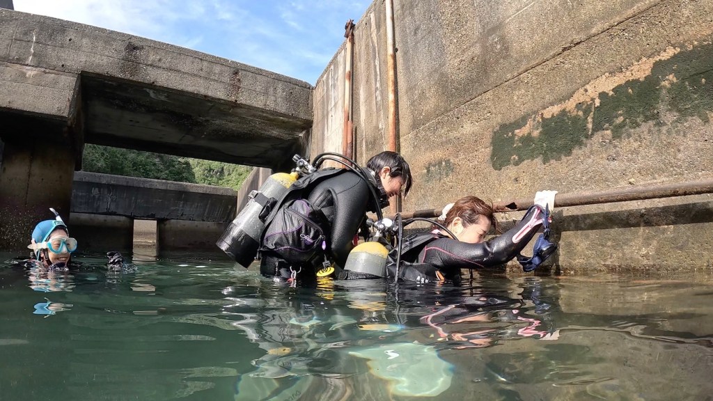 午後の部は、ライセンス持っているダイバーさんが体験ダイビングの方を連れて来てくれました。体験ダイビングの付き添いで一緒に。