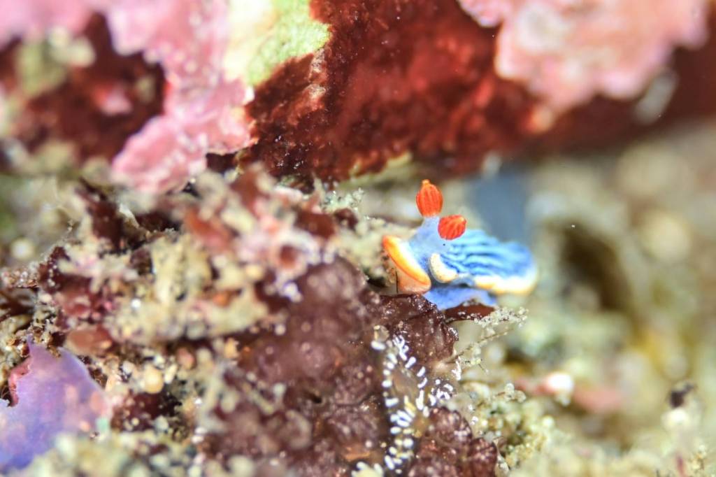 クサフグの群れやイセエビ、ニジギンポ、ソラスズメダイ、ウツボなどを観察しつつ。