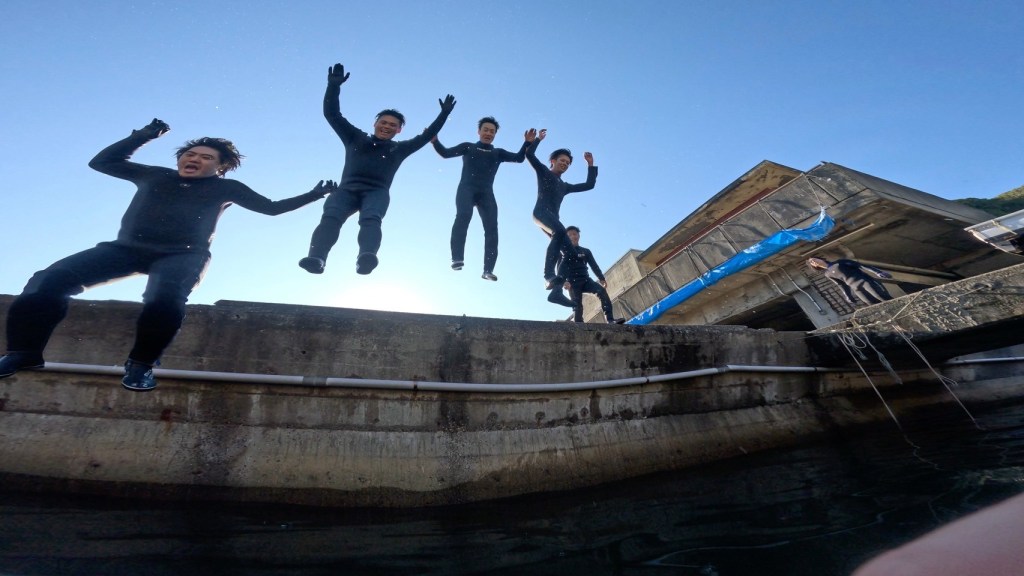 午後チームは、潮が満ちた時にしかできない恒例の飛び込みに挑戦。