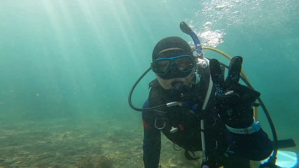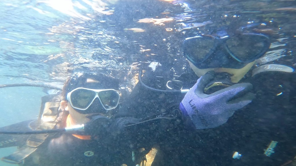 おニューのBCDも使ってもらい給気・排気と操作なども深度変化で浮力が変わっていくのでそんな所も試してもらいました。