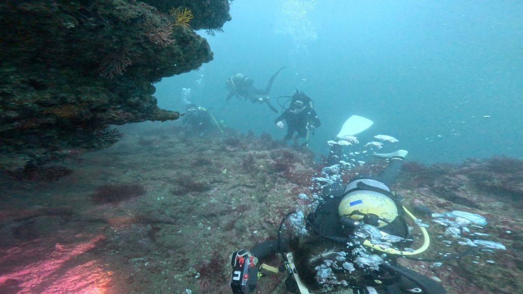 地形沿いを泳いでると棚が沢山。