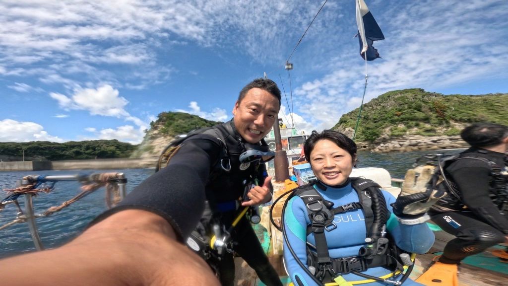 午前、午後の体験ダイビングチームは、仕事が忙しく久しぶりのお休みで来てくれた方や。