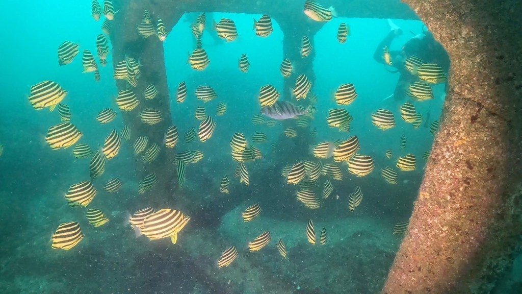 漁礁では、凄い数のカゴカキダイの群れに遭遇。