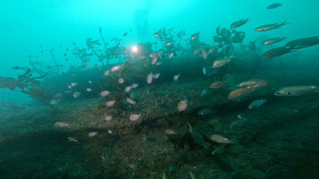 海の方は、水色良好の場所もあれば白濁が入った場所と。マクロ、ワイドとご案内。