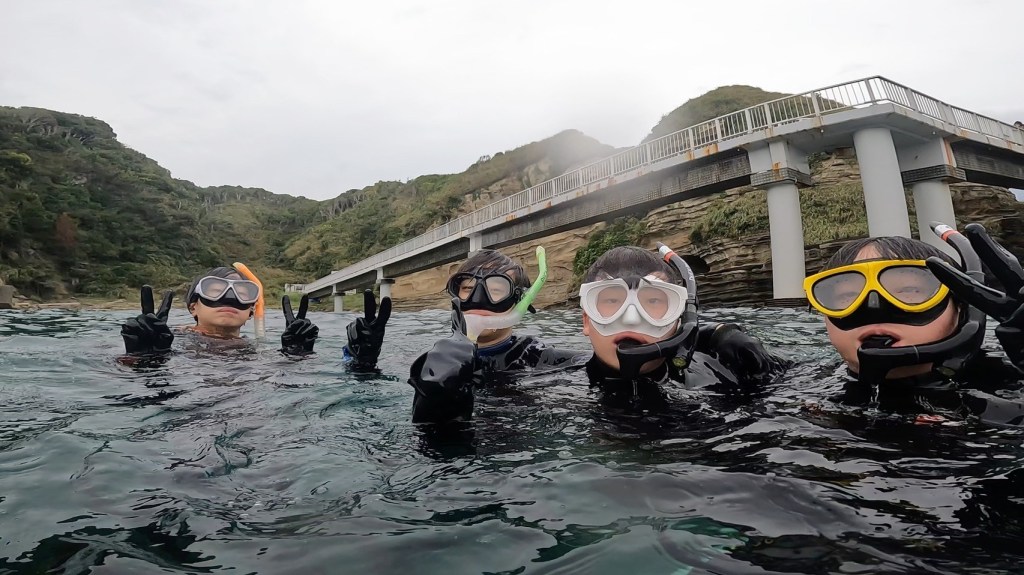 海から上がった後は、みんなで飛び込み。水への怖さもなくシュノーケリングや飛び込みと終始楽しんでくれてこちらとしても何よりです。
