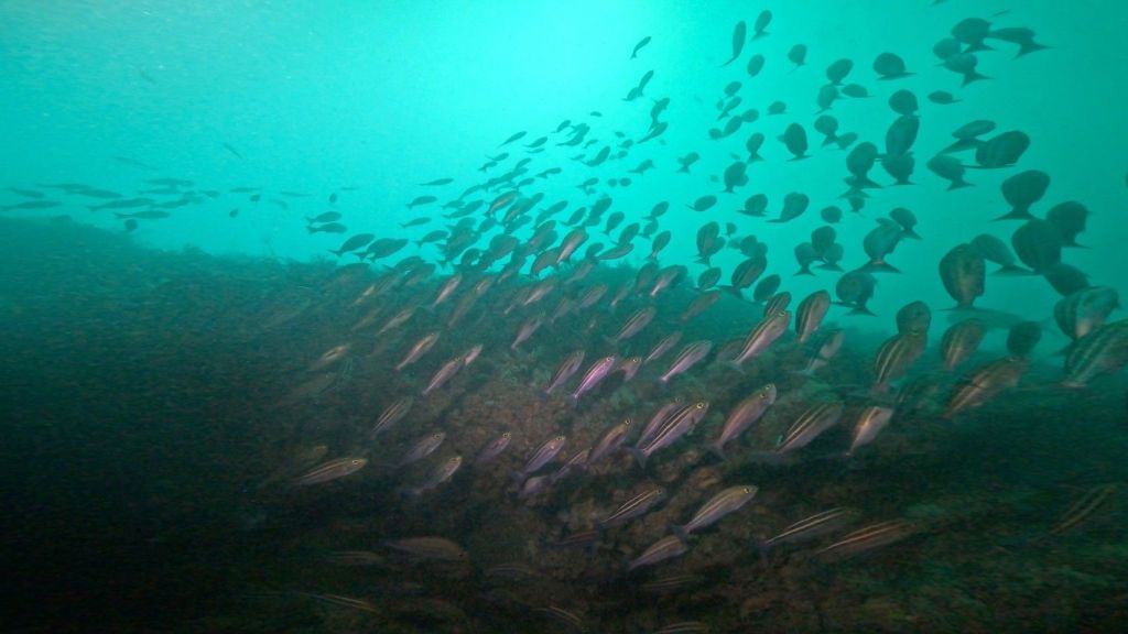 チョウチョウウオがこんだけ群れて固まってるのも中々です。