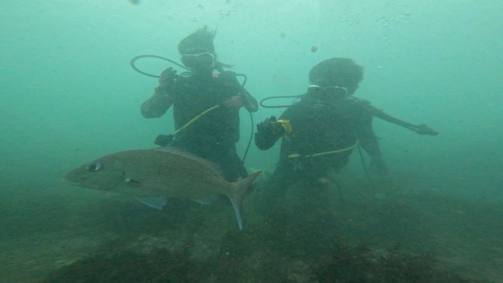身長、体重でウェイト量が大体決まるのでそこから肺のコントロール、バランス、BC操作など一緒に潜ってどのぐらいが良いか探っていきます。