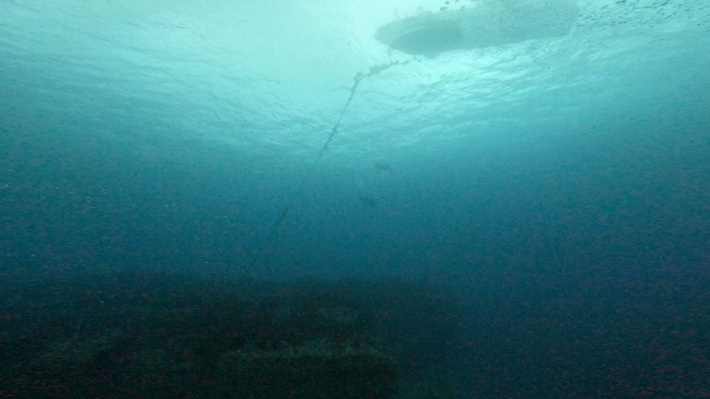 水底から上を見上げるとダイバーさんや船の船底が見えるほど良い潮に。