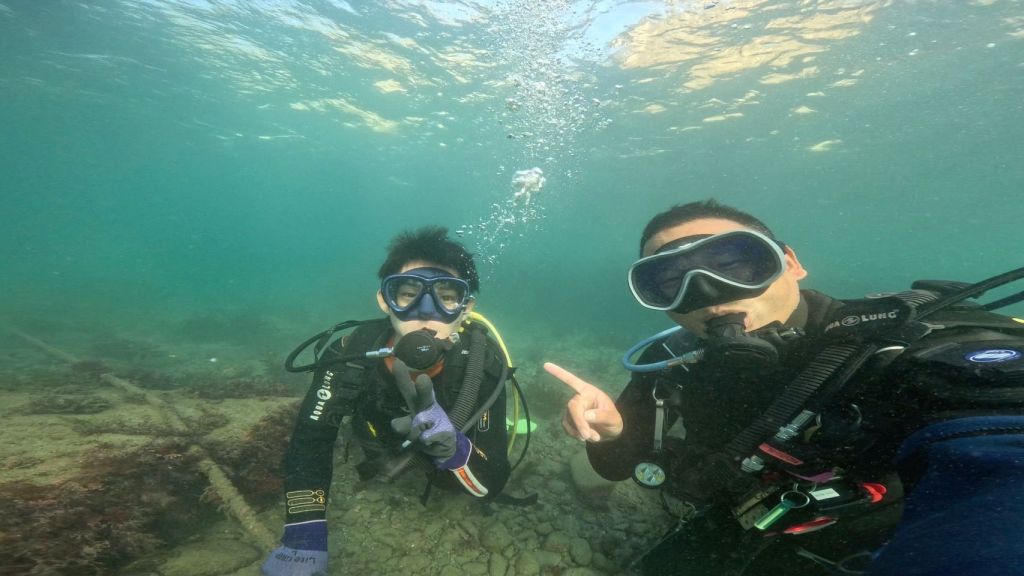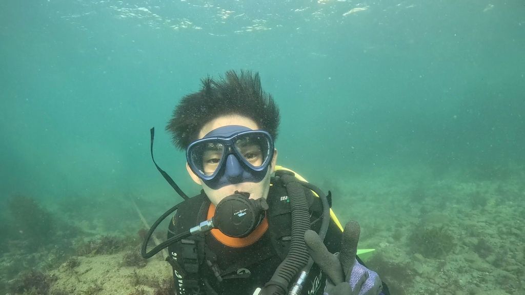 緊張してる感じをみせないので。何回か体験ダイビングやられてるのかと思ったら今回が初めてとのこと。
