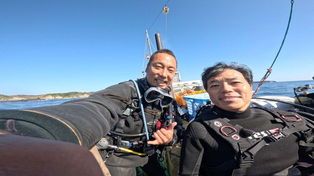 一緒に潜ったダイバーさんは、今回初めての鵜原のボート。地形や群れなど気に入ってくれてよかったです。