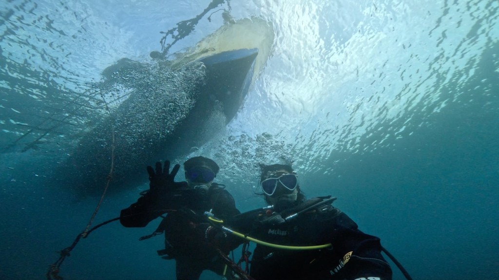 いしいさん、ふくしまさんが潜りにきてくれました。今日で2回目のドライスーツ。