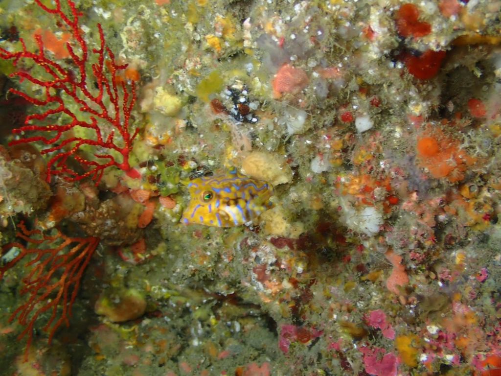 棚沿いでは、色鮮やかなレンテンヤッコが泳いでる姿や。