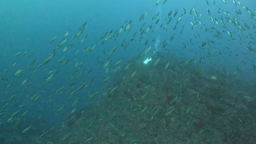 ゆっくり深度変化をして水圧や窒素量の変化も知ってもらいました。ドライスーツコースではウェイト量やインナーの違いなども説明してビーチでしっかりやっていきました。浅場と深場の違いを体験してもらい浮力コントロールが今後どう変化するか楽しみです。