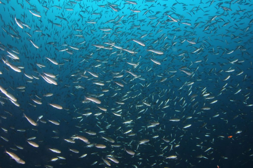 潮あたりが良いときは、地形が見えないほどの魚影の壁になることも。