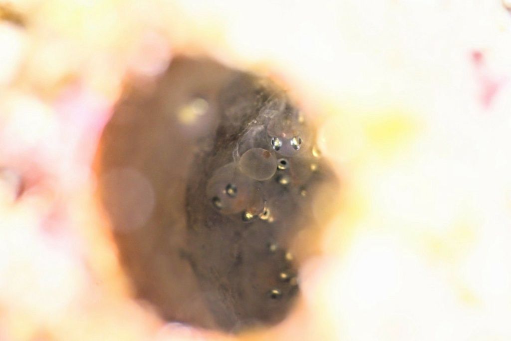 コケギンポは、ハッチアウト後やまだ残ってる卵を観察。