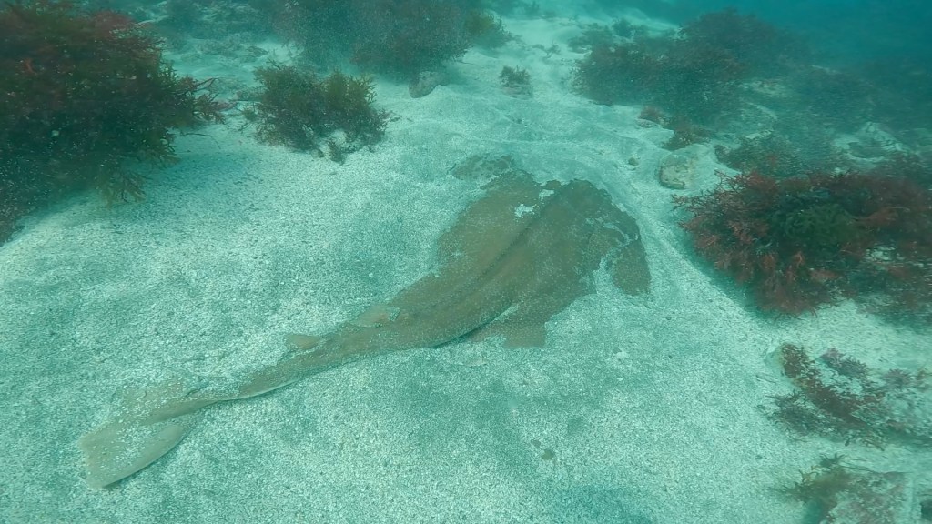 着底して観察してたらカスザメの上をマダイがウロウロ。