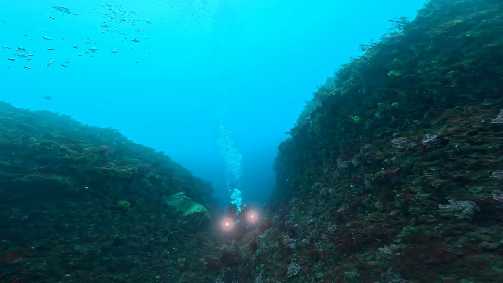 ヒンヤリした水温もあって張り付かず地形沿いを泳いだり。群れものを捜索。
