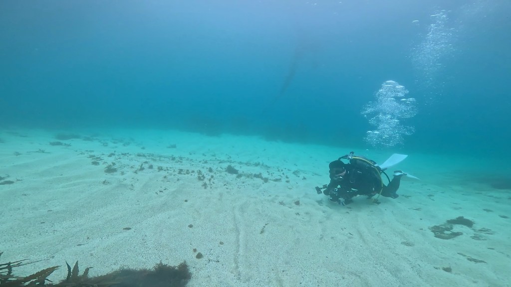 白の砂地が良い景観で。ゴロタやダイバーさんいれたり自然光だけでライトいらずで景観写真も良いです。