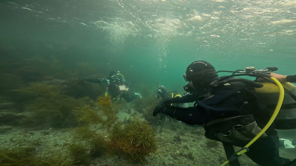 陸ではドライスーツのコツや水中でのバランスのコツなどを説明。