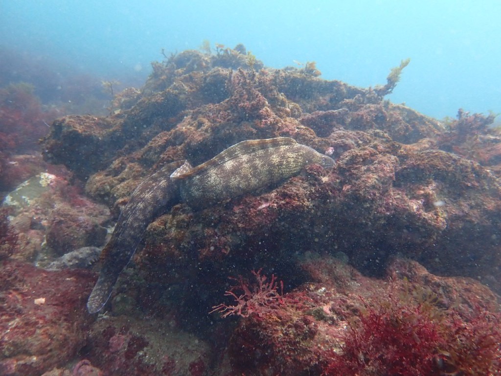 幼魚では、カサゴ、キヌバリなど。棚沿いでは大きな伊勢海老。サラサエビなど甲殻類を観察し。リクエストだったナマコを紹介していきました。