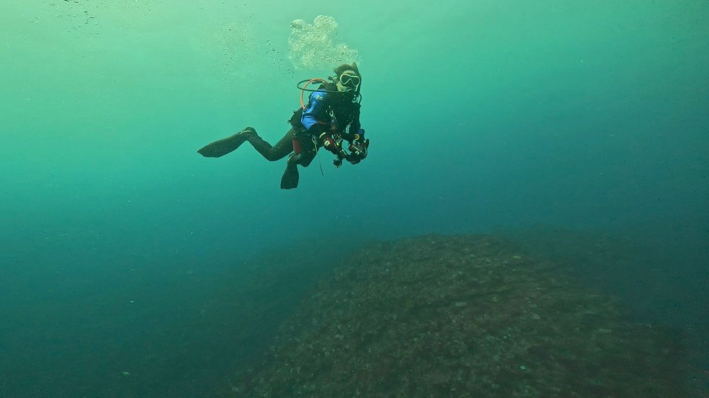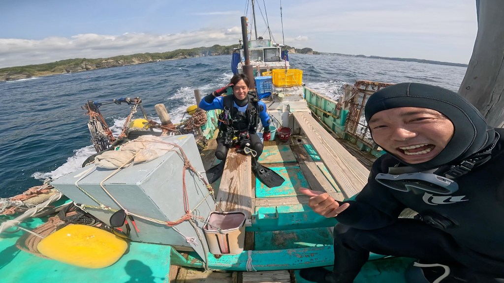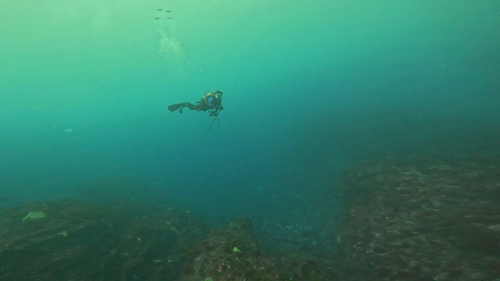 自分は、黄色のフィンを持ってたので一緒に潜ったダイバーさんに竿持ってもらいました。引き上げまでありがとうございます。