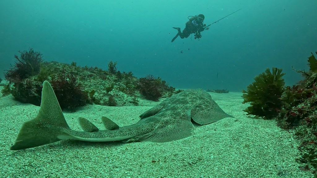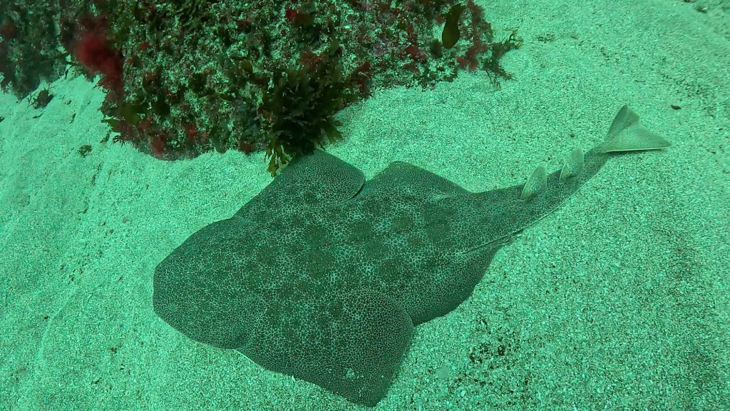 白の砂地では、カスザメ。