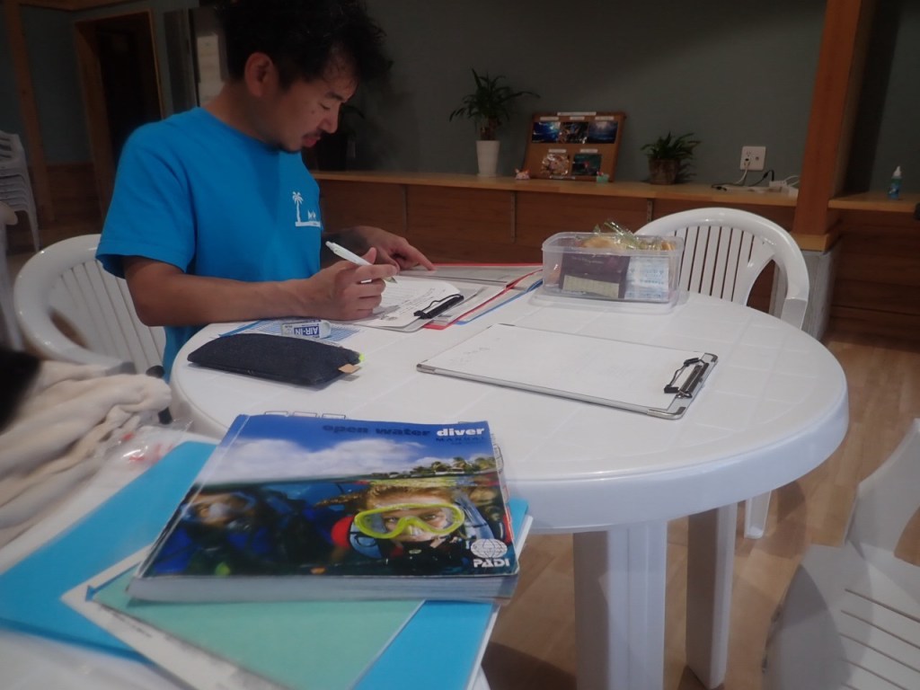 潜る前にダイビングのことを知ってもらい。
