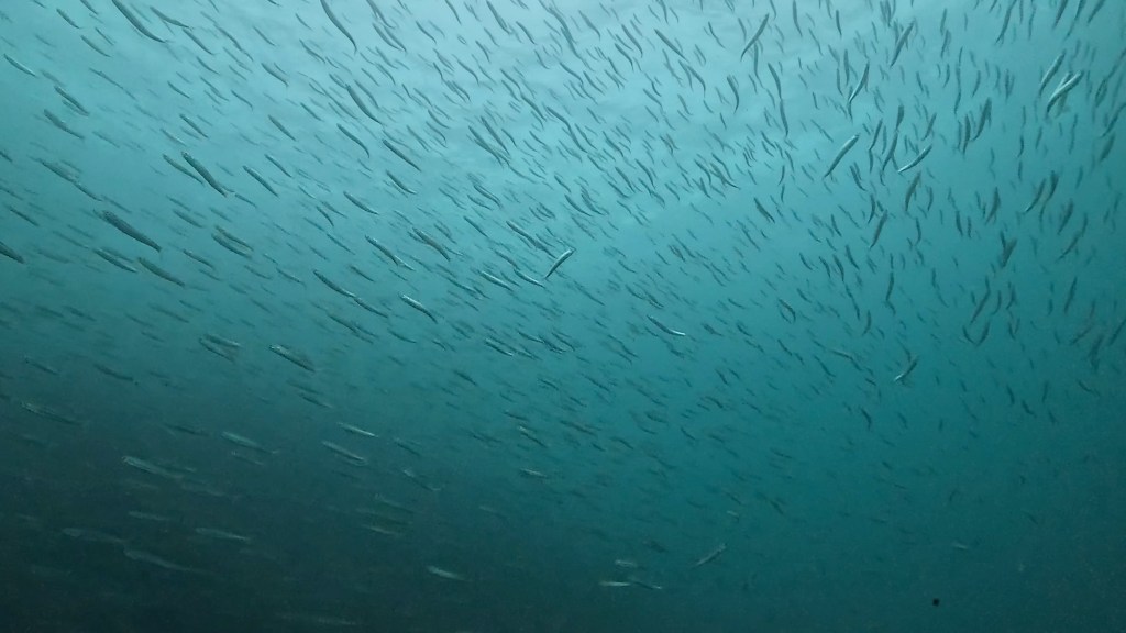 ライセンス取得コースでは、スキルをやるたびイワシ、イナダと魚に巻かれて。講習よりも上が気になると潜り終わった後に盛り上がりました。