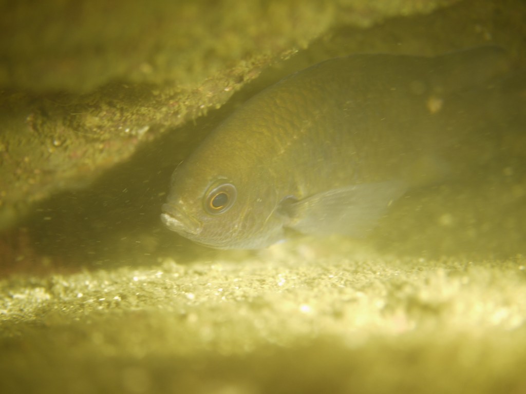 棚沿いでは、スズメダイが隠れていて。水温上昇とともによく見ると卵守りもしていて。