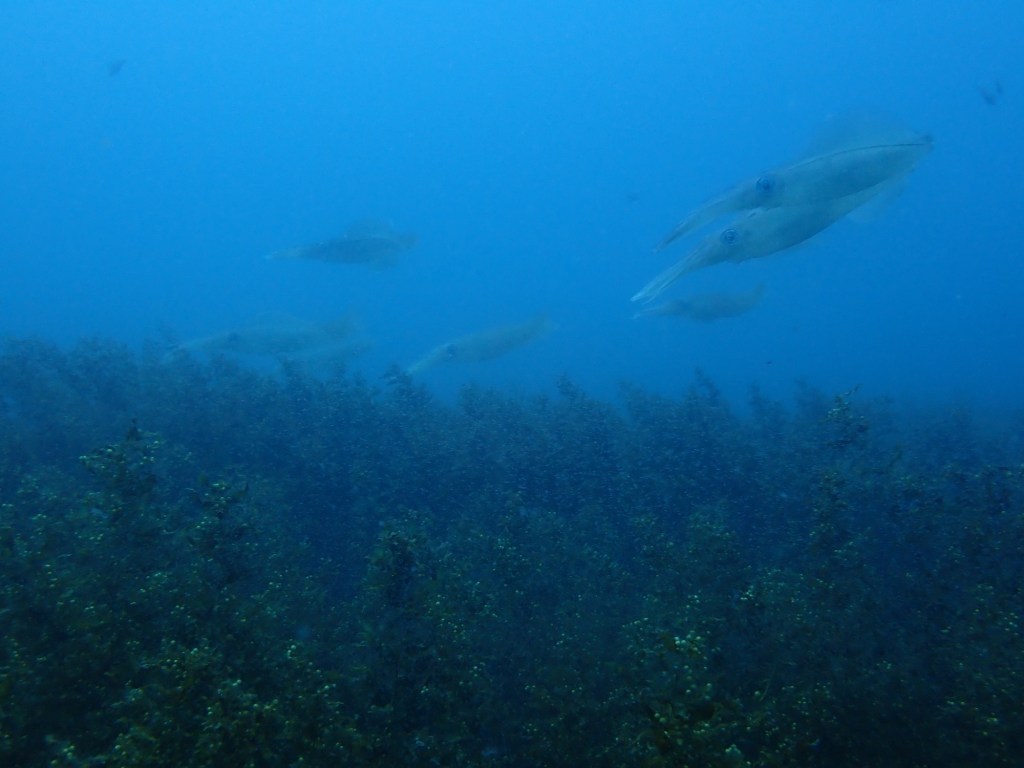 アオリイカシーズンが入り海藻に卵を産み付けます。群れや卵を観察してきました。