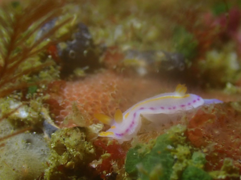 ウミウシは、サメジマオトメウミウシがビーチで多く。色んなシチュエーションを狙って撮影できます。