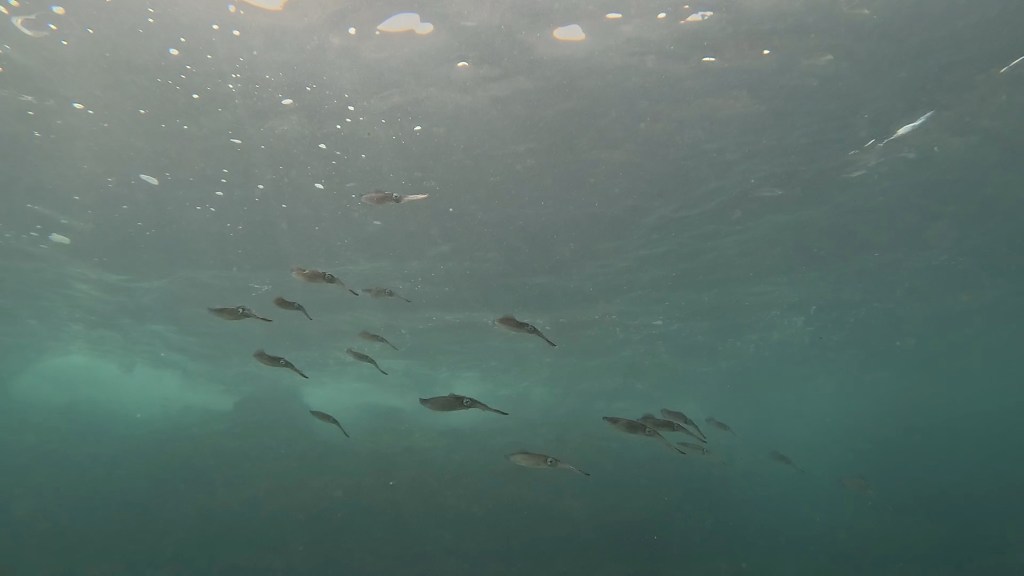 午後の部は、潮が上がり視界も回復してきました。なので、群れや、小さい生物た切り替えて紹介していきました。