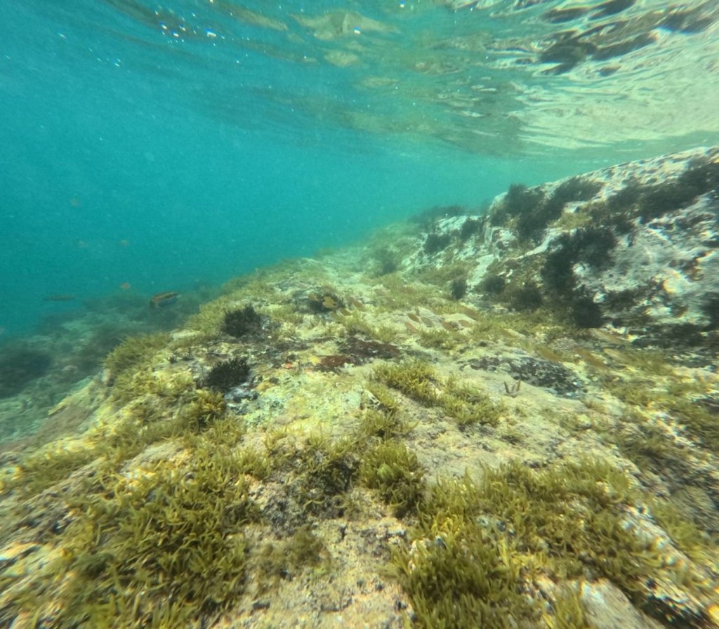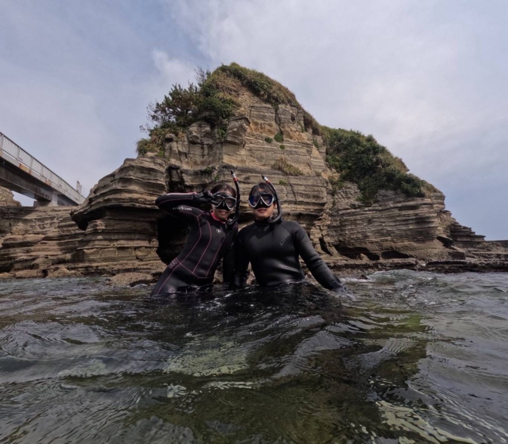 シュノーケリングチームは、水面からアプローチとなります。浅場の水深から磯場とまたダイビングでは潜らない浅い深度でカラフルな幼魚や他の生物を紹介していきました。