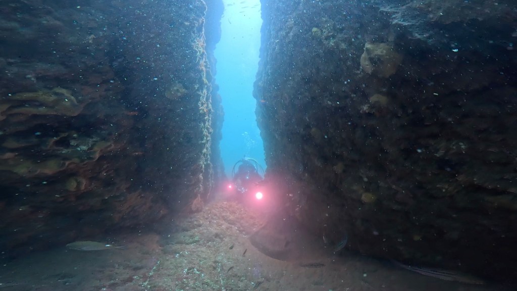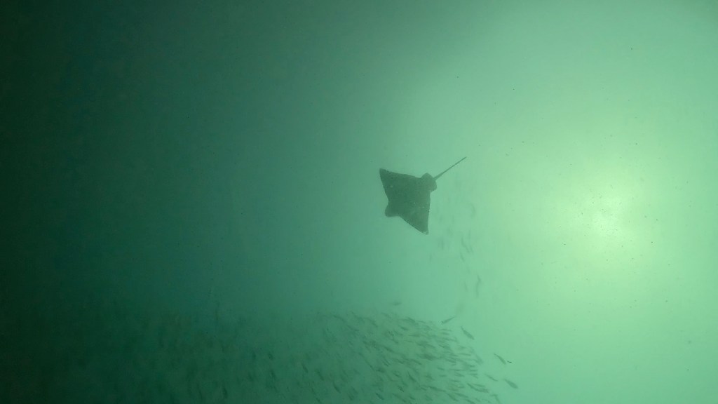 クレパスをくぐったり。上向くとトビエイ乱舞。