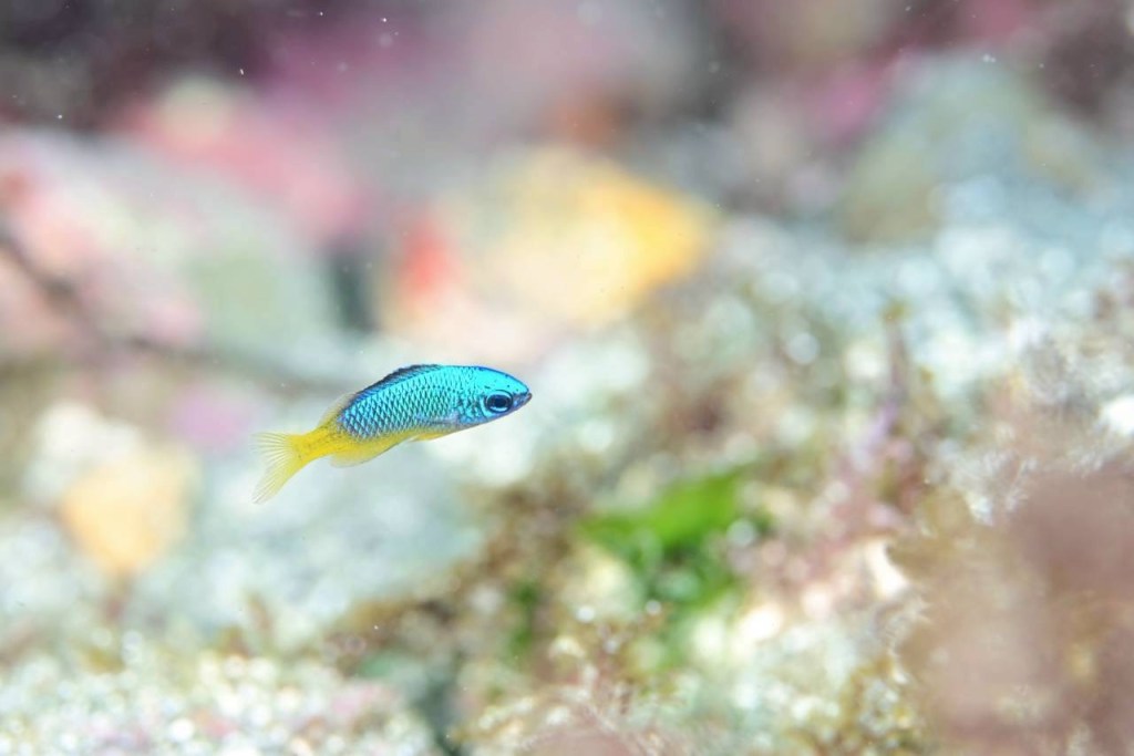 カンムリベラ幼魚、ソラスズメダイ幼魚。