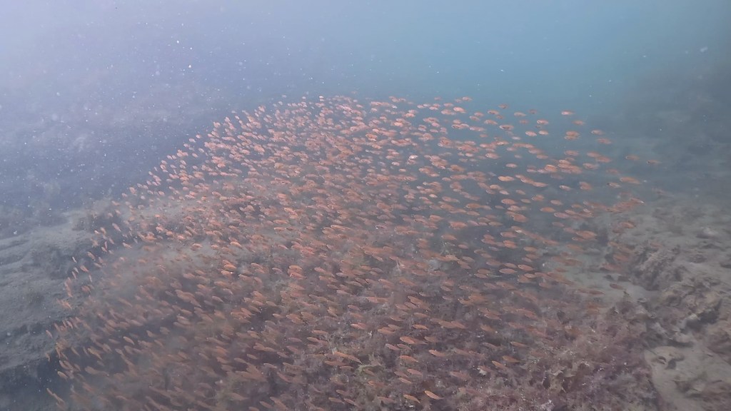 この時期は、サイズもあり個体数が増えて泳いでいると迫力あります。寄ってくるのを待っていると警戒心が薄れて近くにきてくれますよー。