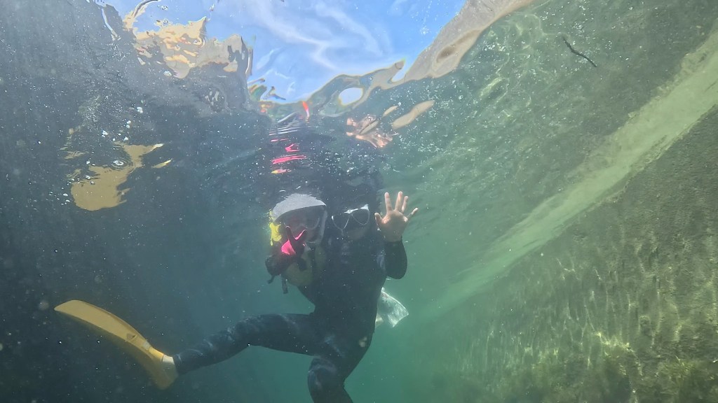 ダイビングにも興味出たのか途中まで水面からついてきてました。