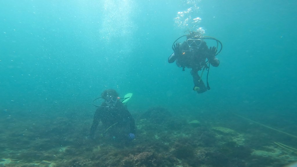 作業潜水2DIVE後に調査ダイブ1DIVEしてきました。深場の方に行くと水温下がってました。